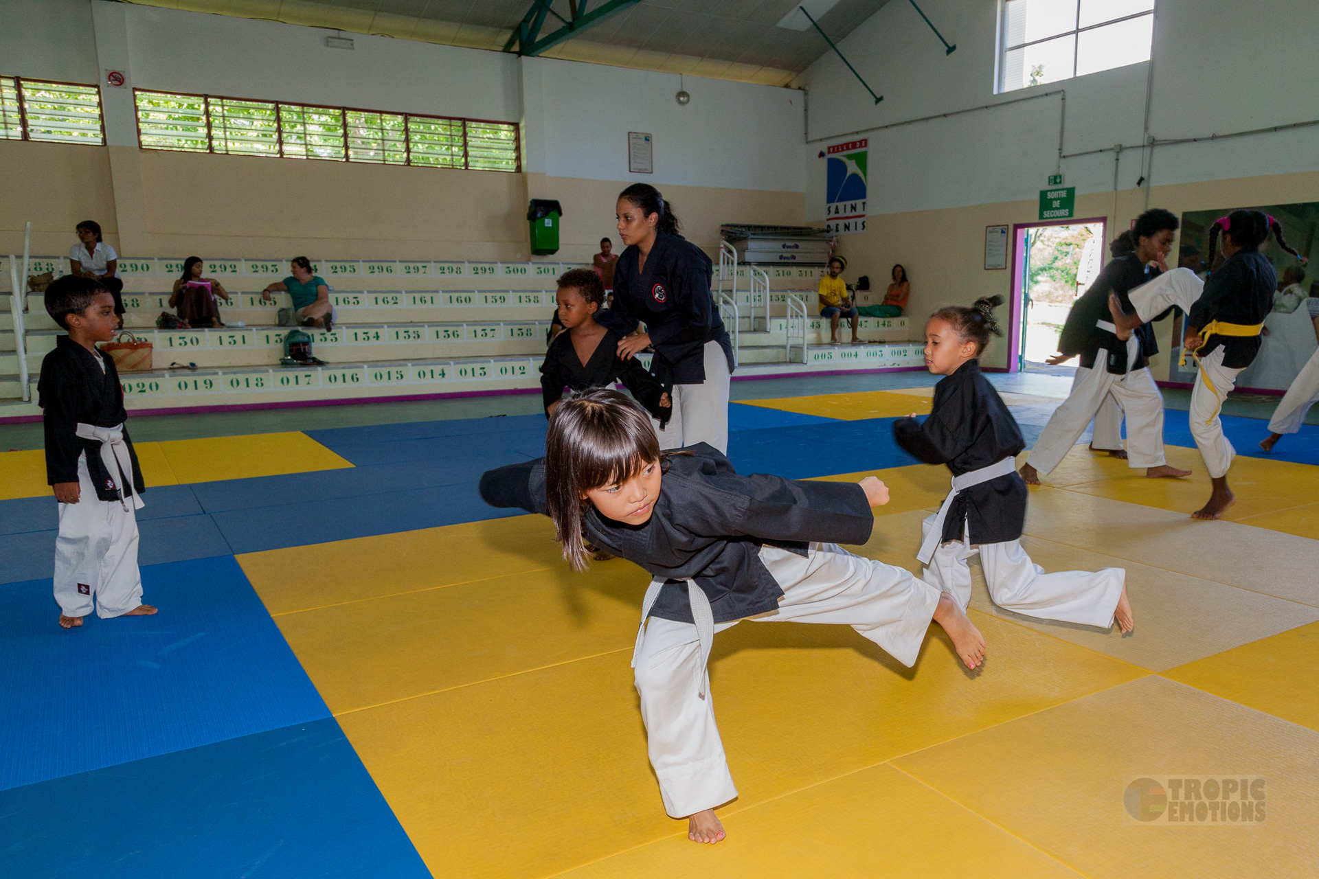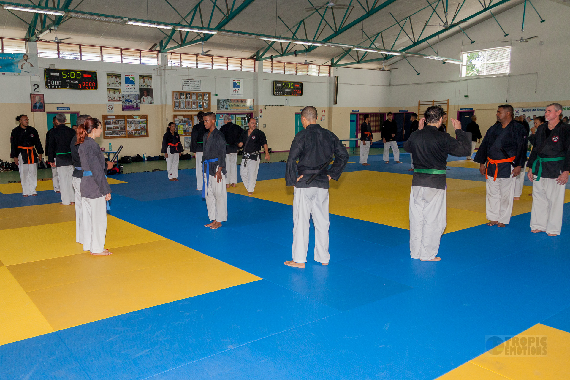 Dimanche 9 avril a eu lieu un stage de masse Taï-Do. Ce fut l'occasion de réunir pendant toute une matinée l'ensemble des clubs de l'île. Moment de rencontre, de partage et de travail dans une ambiance studieuse mais conviviale. Ce stage fut mené de main de maître par Sensei Jacky LEBON, assisté par les ceintures noires : Marie-Lise, Enrico, Anderson, Yoan, Corrine, Guy, Christina, Thomas, Kevin.